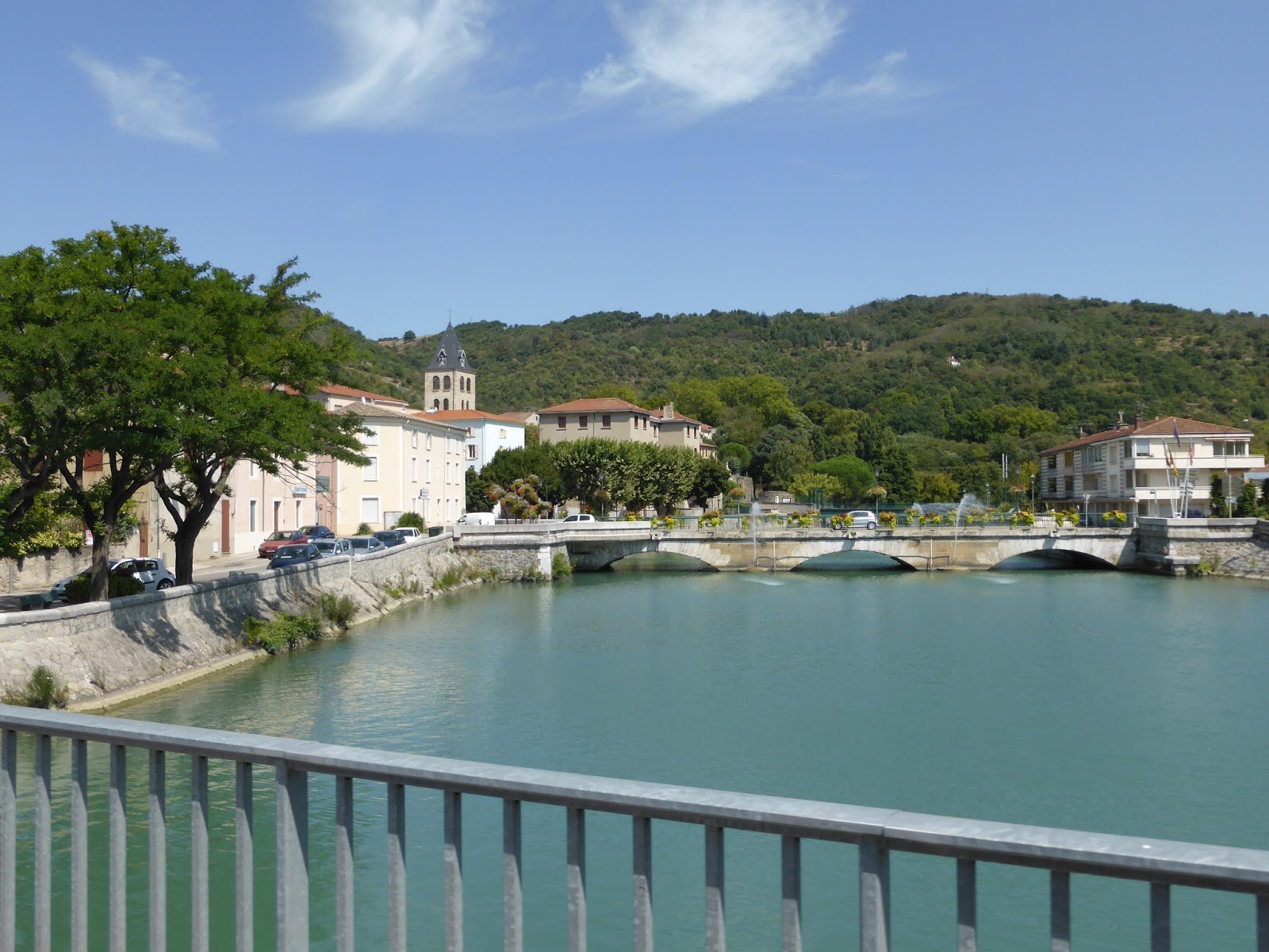 We also cycled to Perpignan which, in spite of some interesting buildings, like the Castillet, the Cathedral and the lovely area alongside the river with its pretty landscaped banks, did little to excite us. It was incredibly hot, exceeding 40°, so we decided to head back. I was starting to feel the effects of cycling such a long way in such extreme temperatures as there wasn't the normal cooling breeze as we cycled along. By the time we got back we had cycled 58kms, our longest ride on the hottest day!! The only plans we had for the evening involved a cooling shower followed by pizza and brandy, lots of both!!